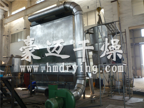 沸騰干燥,又稱(chēng)流化床,它是由空氣過(guò)濾器、加熱器、沸騰床主機(jī),旋風(fēng)分離器,布袋除塵器、高壓離心風(fēng)機(jī)、操作臺(tái)組成,干燥室為矩形箱式,底部為均風(fēng)室,風(fēng)室與干燥室之間為多孔型布風(fēng)板,通常在干燥室內(nèi)設(shè)置多個(gè)豎向擋板,將流化床分割成若干小室,每塊隔板均可上下調(diào)節(jié)其底部與篩板之間的距離,使物料的干燥時(shí)間更加均勻。由于干燥物料的性質(zhì)不同,配套除塵設(shè)備時(shí),可按需要考慮,可同時(shí)選擇旋風(fēng)分離器、布袋除塵器,也可選擇其中一種,一般來(lái)說(shuō)比重較大的如沖劑及顆粒料干燥只需選擇旋風(fēng)分離器,比重較輕的小顆粒狀和粉狀物料需配套布袋除塵器,并備有氣力送料裝置及皮帶輸送機(jī)供選擇。